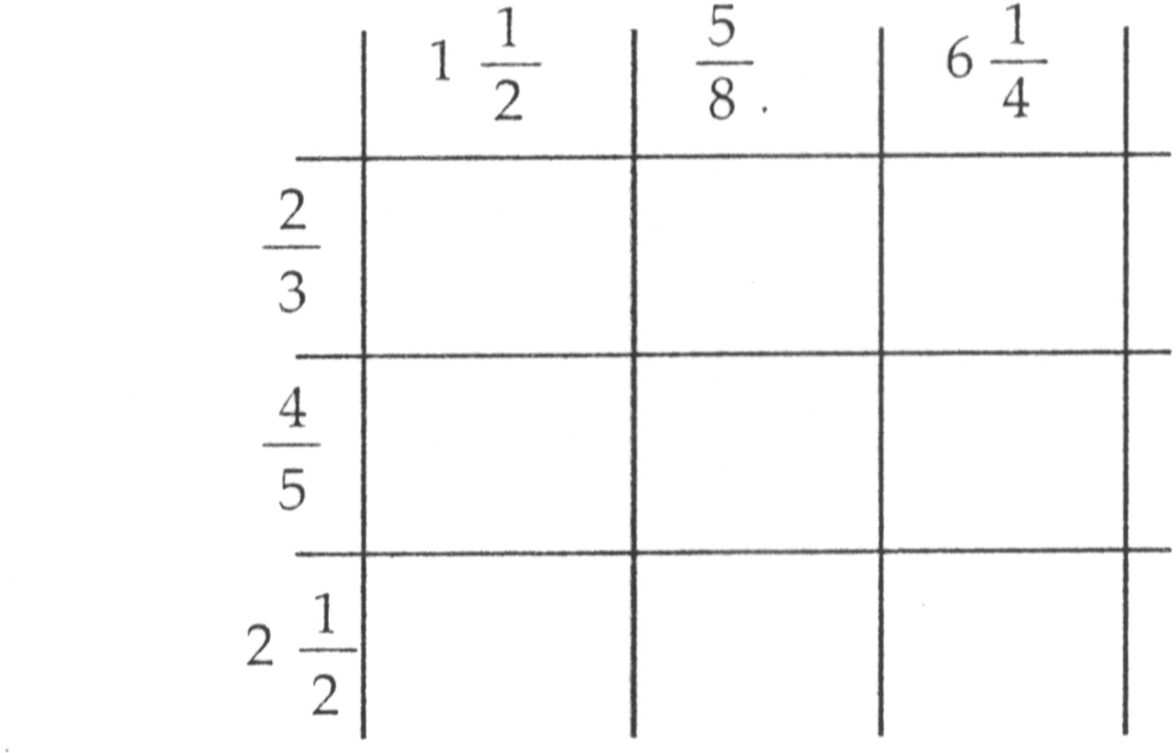 Schrijf bv. vier niet al te moeilijke breuken zo op: