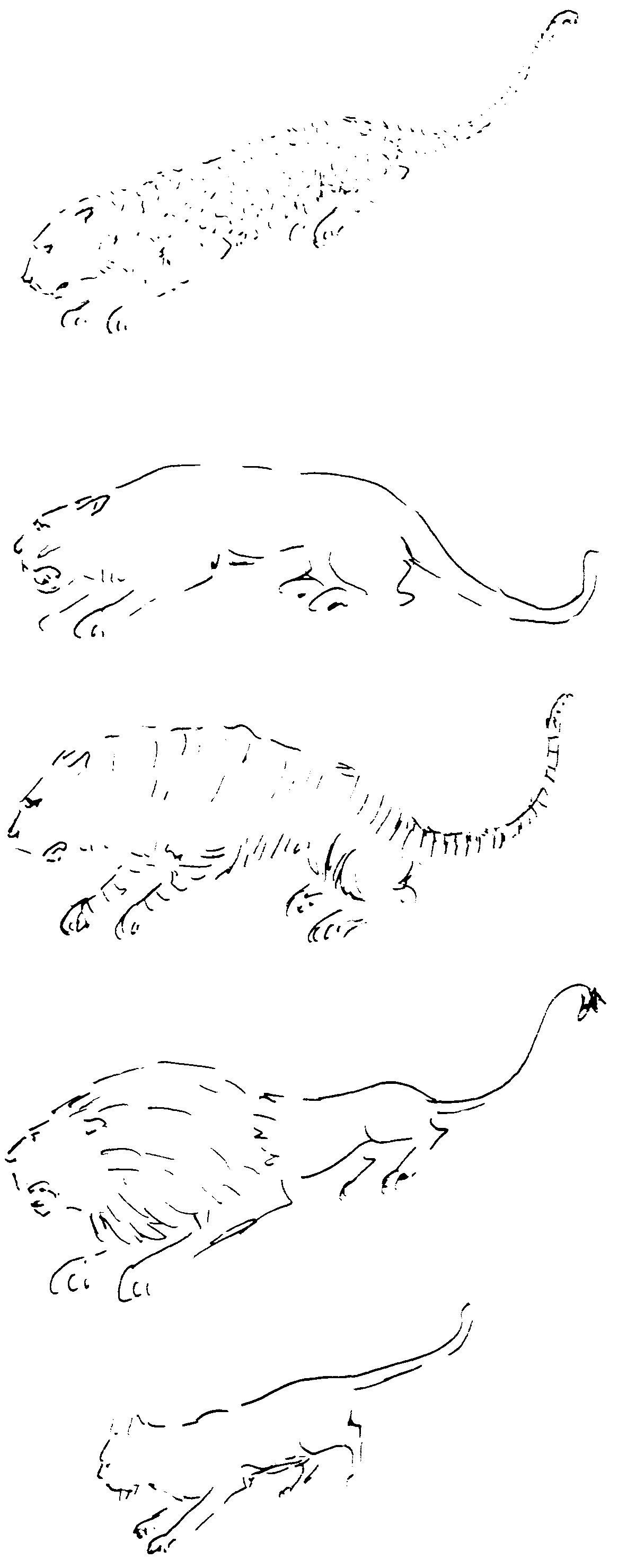 Uiteraard komen ook andere katachtige roofdieren ter sprake. Ook die kunnen getekend worden: