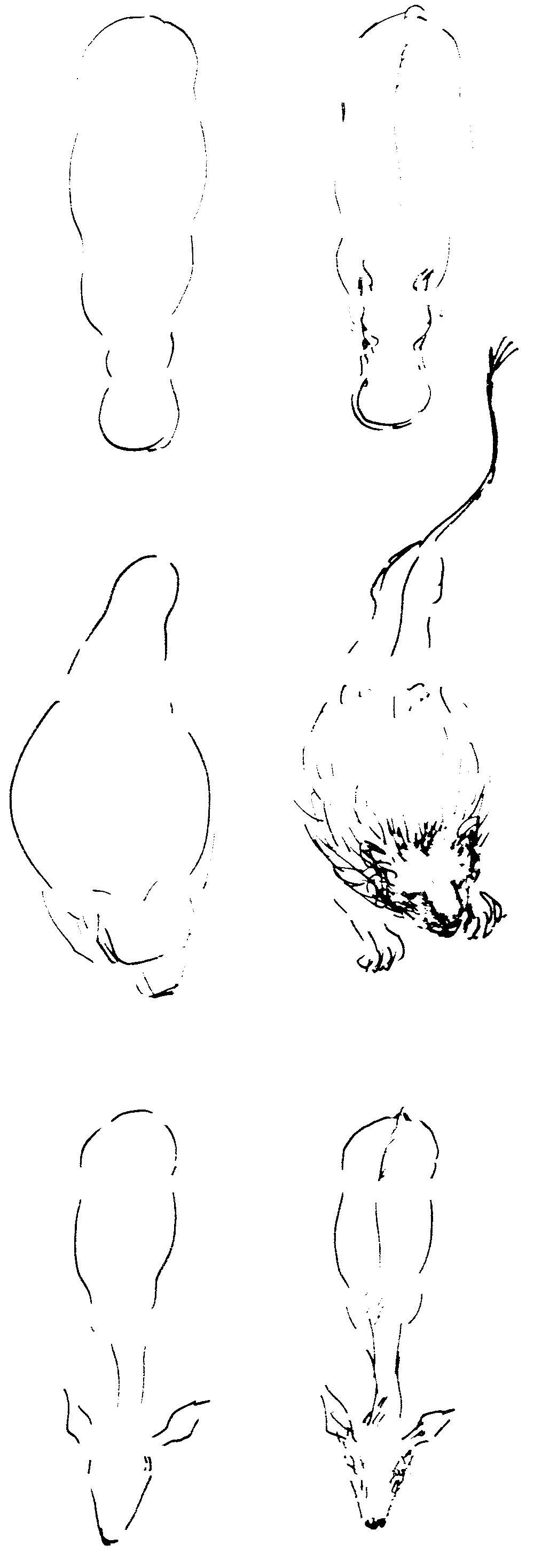 Bij het tekenen gaat het vooral om de beweging van de vorm. In dit geval de leeuwenvorm.