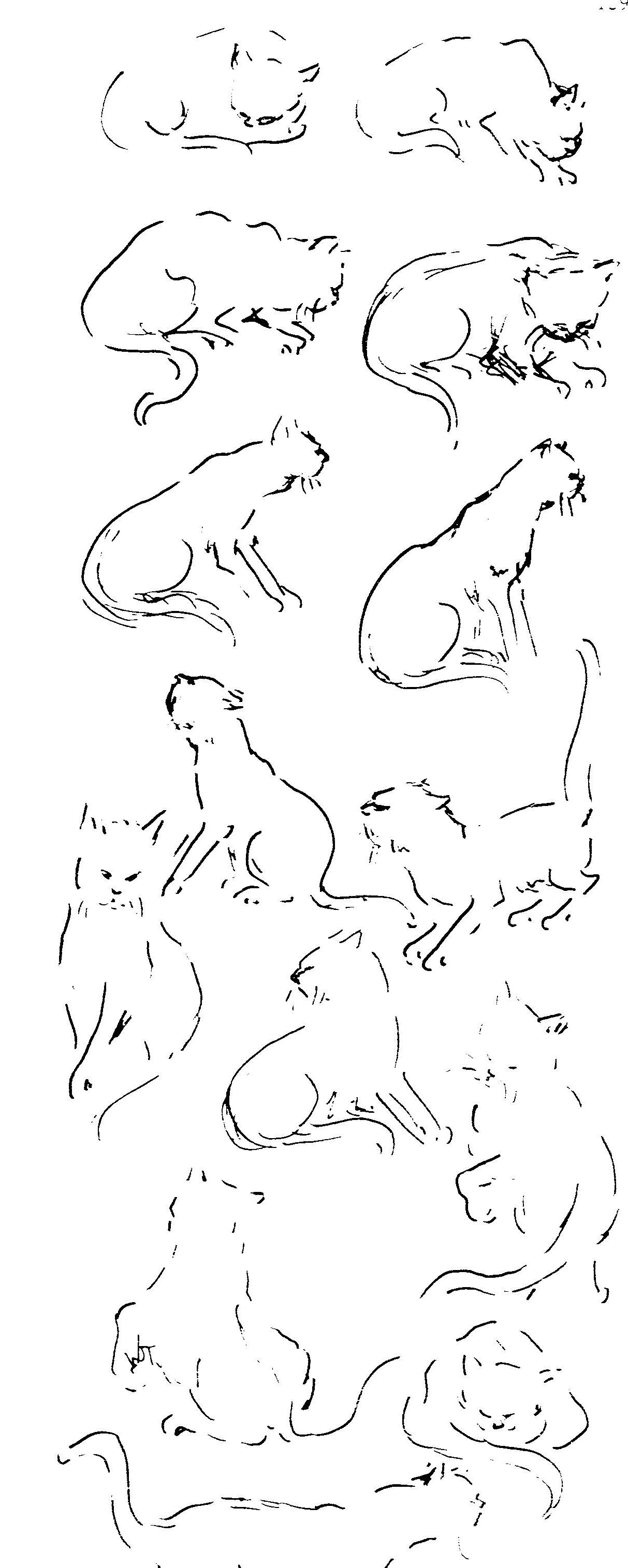 Hoewel deze ‘katten’ door Clausen zijn bedoeld als oefenwerk in klas 7/8 zijn ze zeer goed bruikbaar in klas 4. Je kunt ook deze heel makkelijk als leeuw (of andere grote kat) tekenen.