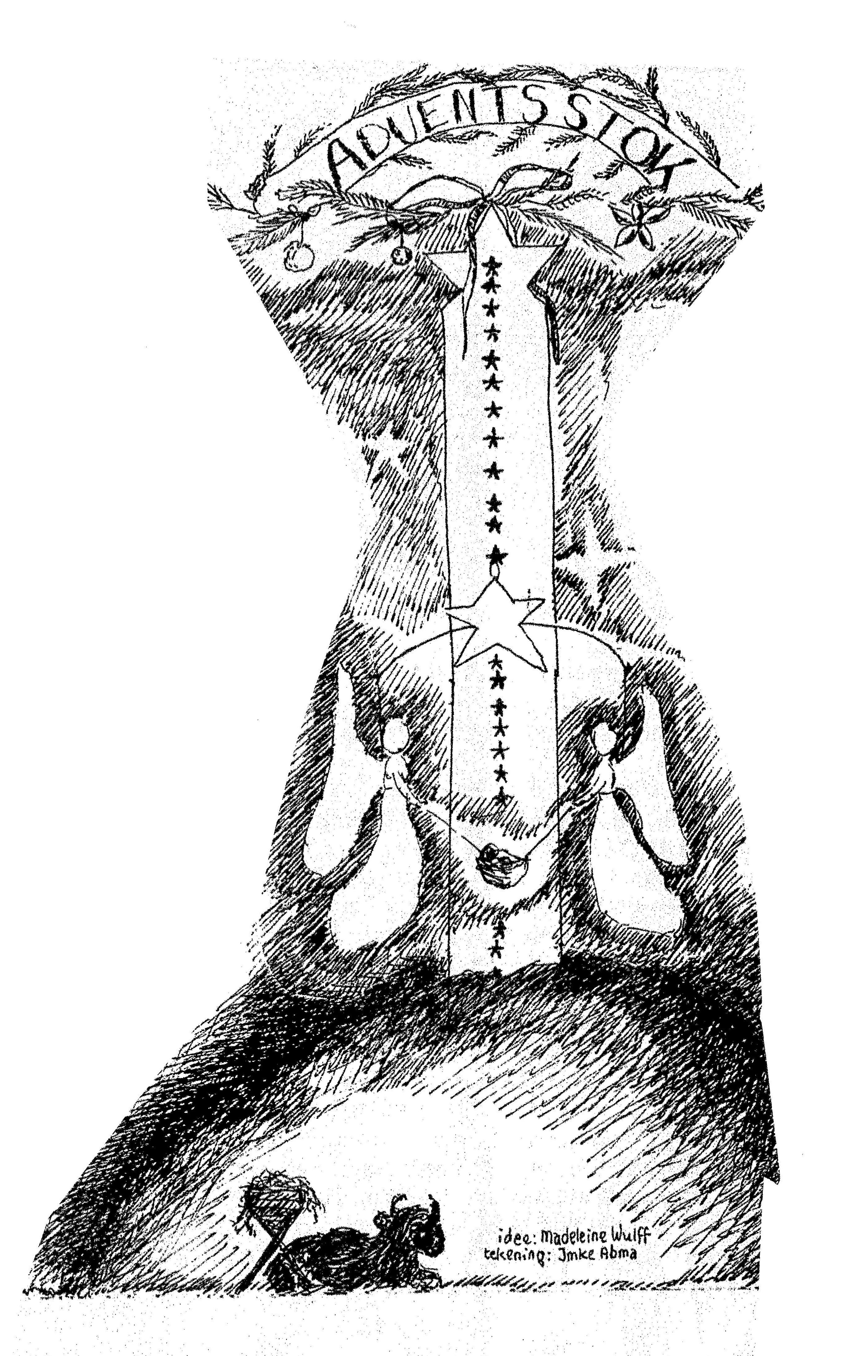 De adventsstok kun je boven het stalletje hangen. Iedere dag komt het kindje een sterretje dichterbij.
