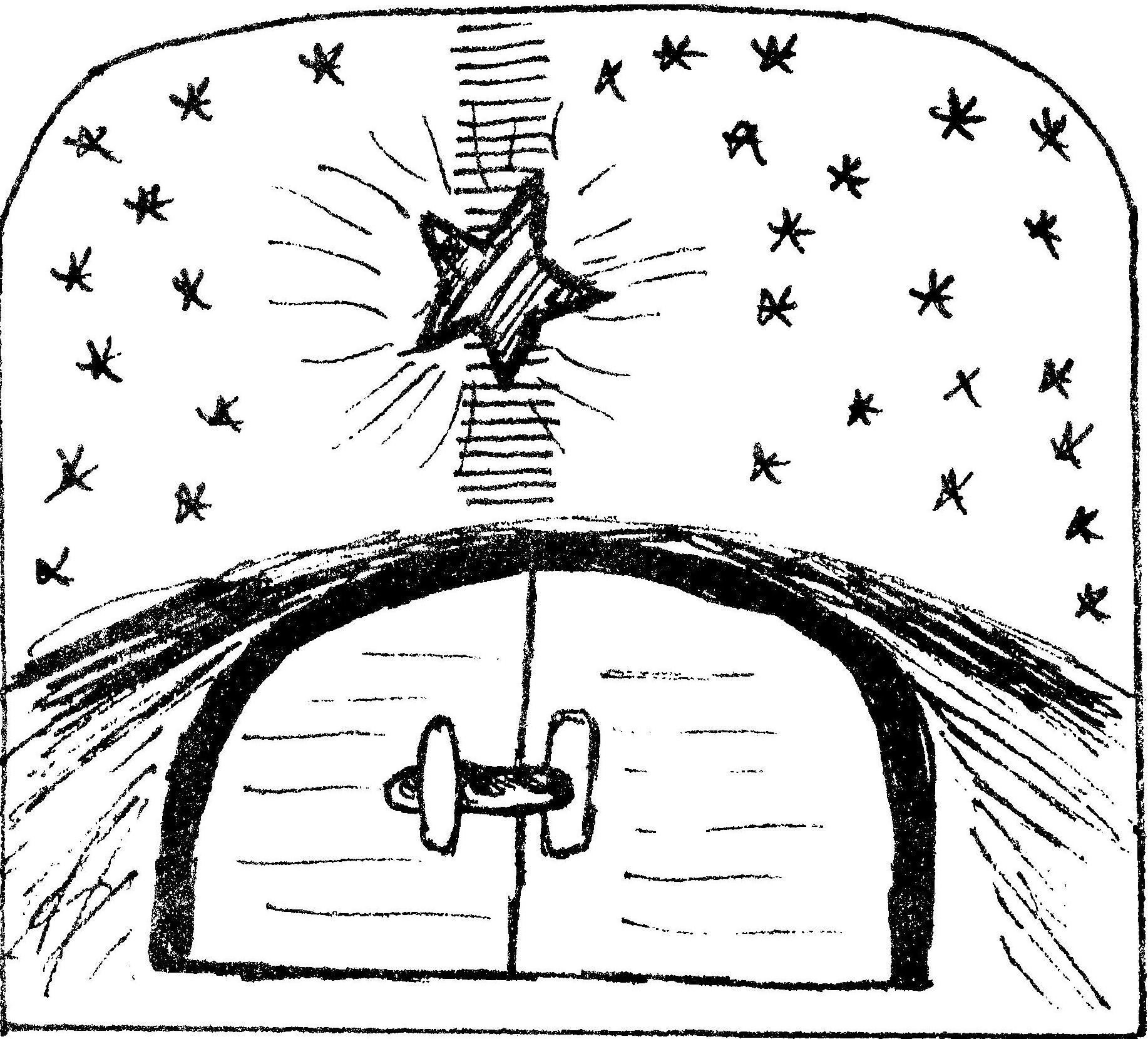 – Uit een groot vel tekenkarton onderaan een grote poort snijden. Om de deur te kunnen sluiten, op een ervan een reepje met een lipje eraan, op de ander een reepje, aan de uiteinden vastgeplakt, zodat het lipje van de andere deur erdoor getrokken kan worden. Achter de deuropening een klein vel tekennapier plakken, waarop het kerstgebeuren getekend of geschilderd staat (of een transparant ervan!) Boven de poort 28 gleufjes maken of zoveel als er dagen komen tot het kerstfeest is. Een kerstster knippen uit tekenkarton of goudpapier, aan de achterkant een reepje om de ster mee in de gleufjes te steken. Elke dag komt de ster nu een stukje dichter bij de stal. De hele voorkant van de kalender wordt beschilderd met stal of grot, hemel en sterren.