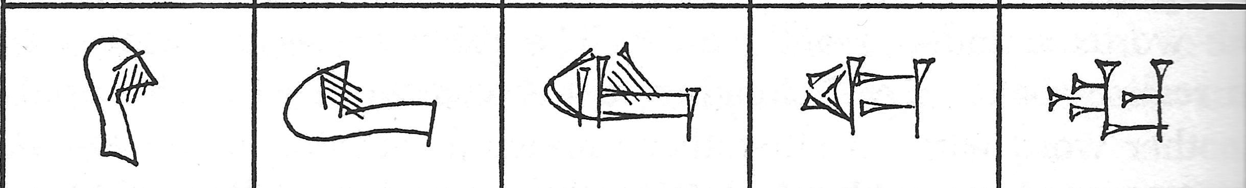 Kijk, je kan natuurlijk als je niet zo vindingrijk bent, als voorbeeld het Egyptische beeldschrift nemen of een ander beeldschrift en dan proberen uit bepaalde vormen van dit beeldschrift de tegenwoordige conventionele lettervormen te herleiden. Maar dat is helemaal niet nodig. Het is helemaal niet nodig om je te houden aan hoe het werkelijk in de ontwikkeling van de mensheid ging.