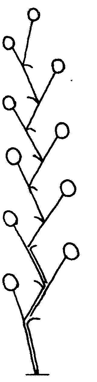 Als zich nu eens aan de ene en dan weer aan de andere zijde een zijtak tot bloem ontwikkelt, heet het bijscherm een waaier: