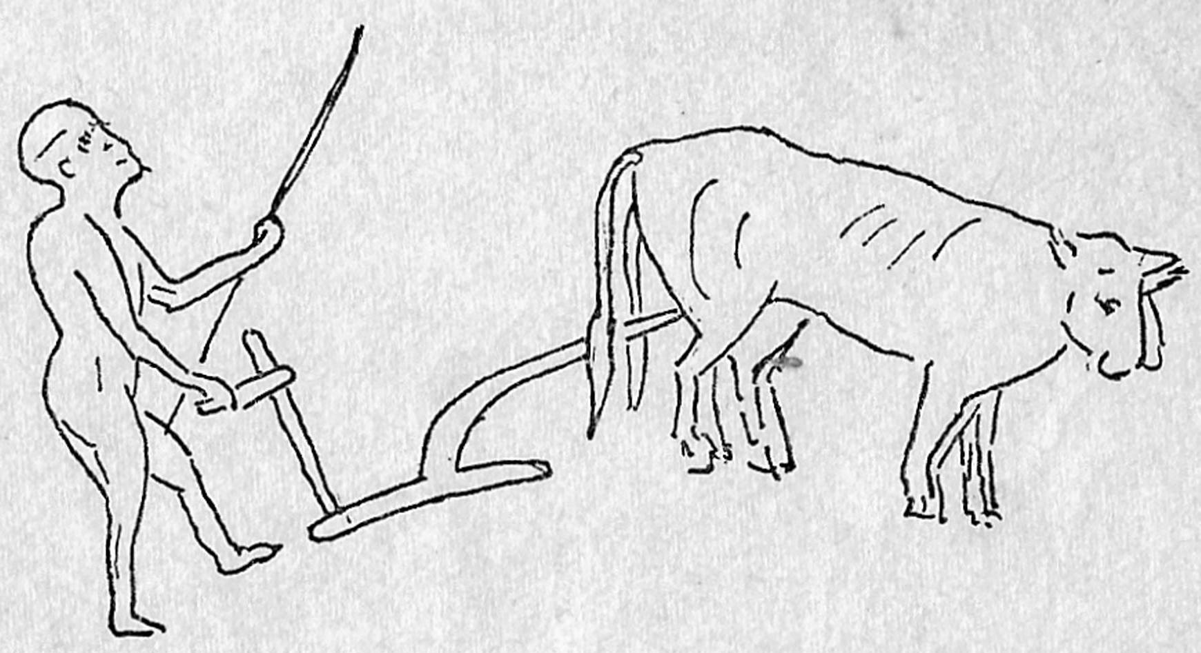 ploeg 21Oud_Egyptisch, twee staartenploeg, dubbele schaar. Grafschildering
