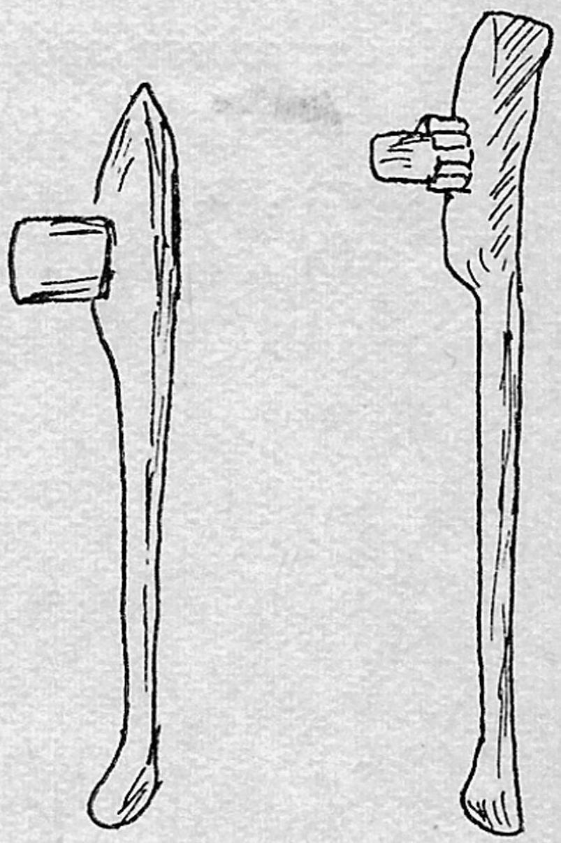 Naast hout werden ook antilopenhoorns, koehoorns, hertengeweien gebruikt; later metaal.