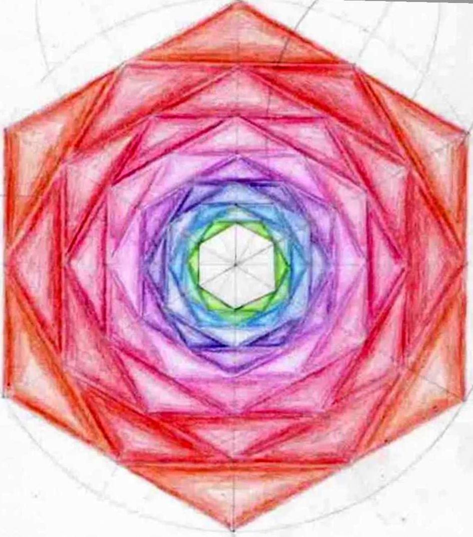 Na een best inspannende manier van voorstellen om tot bovenstaande bewijzen te komen, is het fijn als er in het kunstzinnige toepassen weer een andere kwaliteit wordt aangesproken dan het denken: de wil in de exacte uitvoering van bijv. de zesster en het gevoel in het zoeken van mooie kleurcombinaties.
