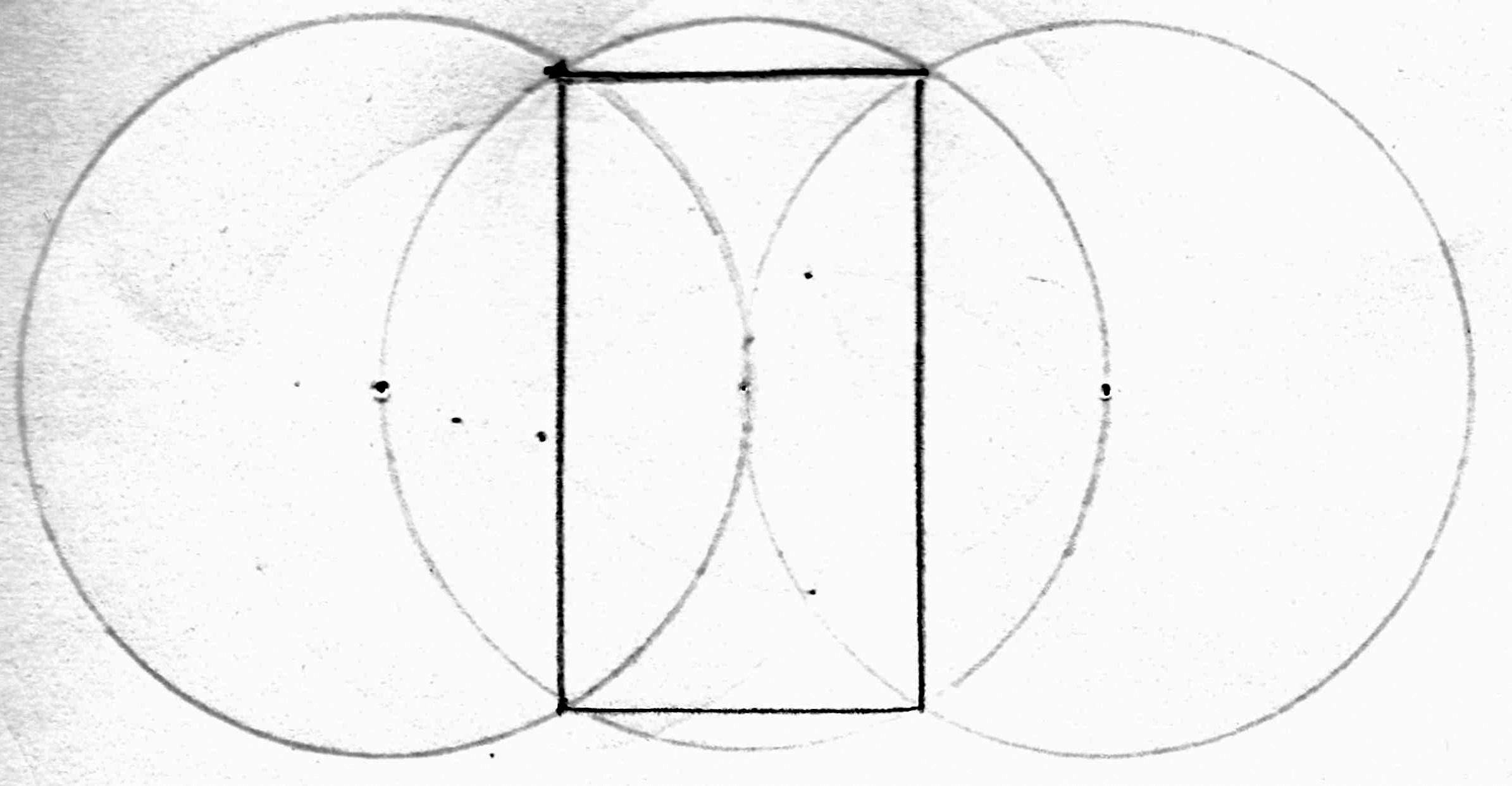 Dit is een zeer belangrijk ogenblik in de meetkundeperiode: voor het eerst wordt duidelijk dat een meetkundig figuur – hier de rechthoek – ontstaat vanuit de cirkel. We gaan natuurlijk vanaf nu na of dat voor elke andere figuur ook geldt.