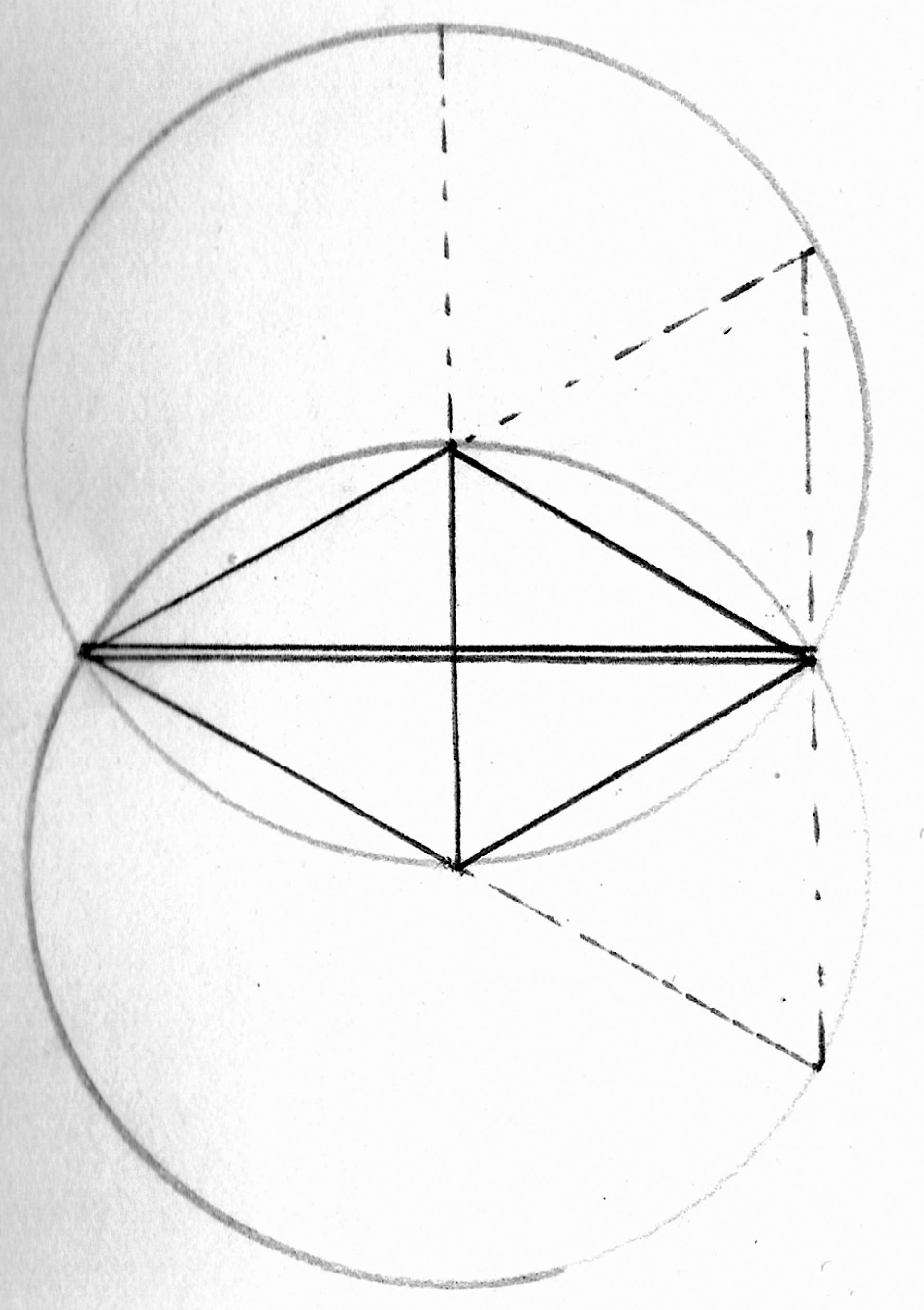 En als we de cirkel(s) niet echt nodig hebben, tekenen we die uiterst dun, zodat we de overbodige lijnen later kunnen verwijderen: