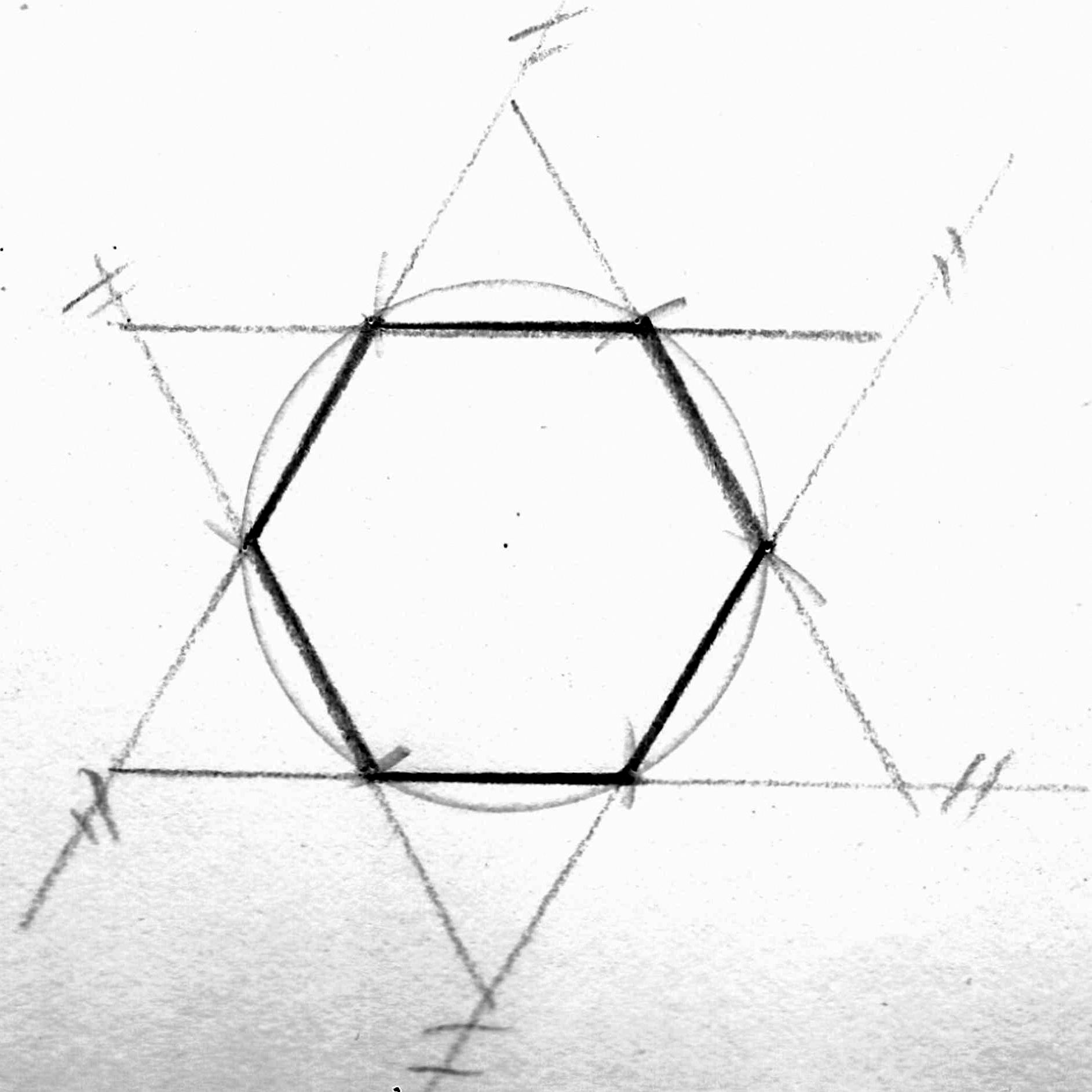We zijn in staat een zeshoek én een zesster te construeren – het nieuwe woord dat we voortaan zullen gebruiken, mét het woord ‘constructie’.