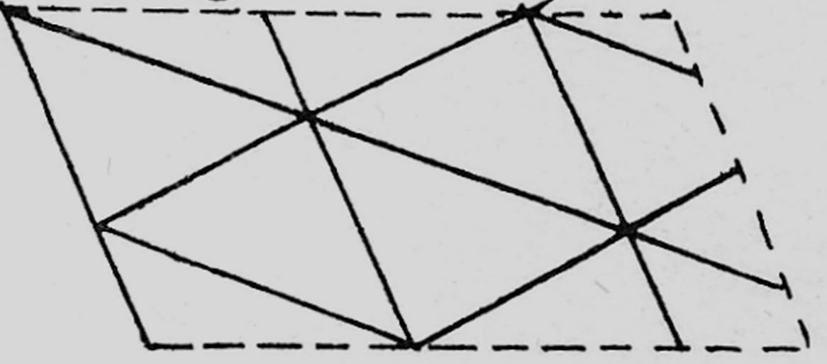 Bij deze laatste is het veld in de lengte getrokken en bovendien schuin vervormd, maar nog steeds bedekken de niet-gelijkzijdige-niet gelijkbenige driehoeken samenhangend het hele vlak.