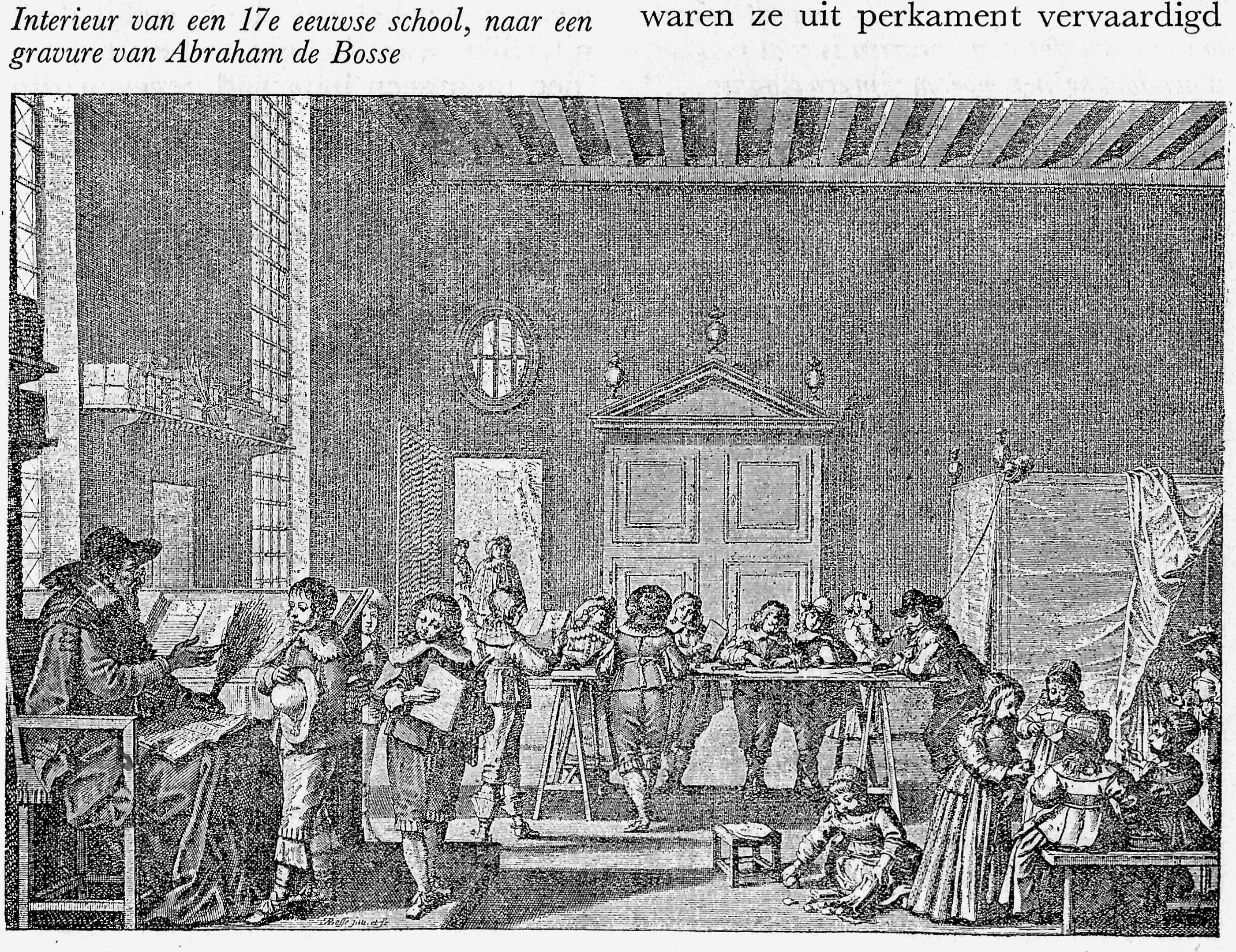 Het doet ons vaderlandse hart goed te weten dat ons land in het verbeteren van deze toestanden een grote rol heeft gespeeld. Reeds in 1430 had de Latijnse School in Middelburg banken. De Latijnse School in Gouda kende toen nog wel geen banken, maar de toen met stro bedekte vloer was er in elk geval al van steen. Voor licht en lucht moest men overigens langer op verbetering wachten. De ramen bestonden uit verglaasd en geolied papier, waardoor de ventilatie uiteraard niet ideaal was. De verlichting bestond uit vetkaarsen en was dus beslist onvoldoende. Pas de uitvinding van de lantaren bracht verbetering, zij het nog uiterst bescheiden.