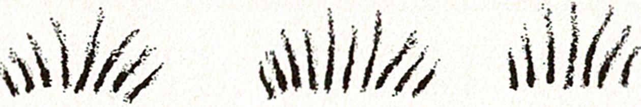 Die Wiesen, die wir nicht abmähen können, die wir aber doch dazu benutzen können, daß das Vieh darauf getrieben wird und das Gras frißt, das dort niedrig, spärlich bleibt, die zeichnen wir auch ein (siehe Zeichnung 5), und sagen dem Kinde, daß das Hutweiden sind.