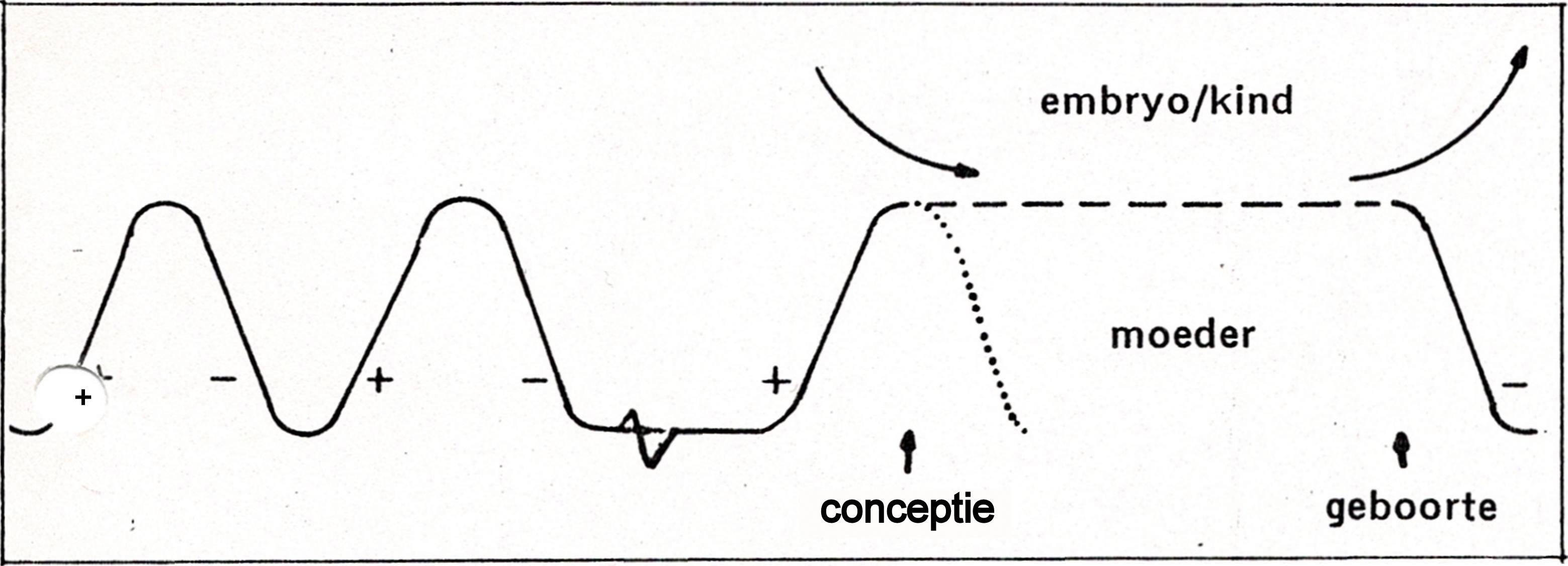 In de weken voorafgaande aan de conceptie vertoont het baarmoederslijmvlies een sterke opbouwende activiteit: het wordt dikker, rijker aan klieren en bloedvaten, etc. Ook gedurende de eerste week na de bevruchting schrijdt dit proces van opbouw, levensactiviteit verder om zo het baarmoederslijmvlies voor te bereiden op de eventuele innesteling van een dan ongeveer zes dagen oud embryo (‘vrucht’). Indien er geen bevruchting en daarmee geen innesteling optreedt wordt het slijmvlies weer afgebroken, hetgeen zich na enige dagen als menstruatie manifesteert. Zo kan men de cyclus van de vrouw beschrijven als een ritmische afwisseling van opbouw en afbraak, van leven en dood. (zie afb.)