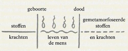 De mens brengt bij zijn geboorte iets uit de geestelijke wereld mee naar de aarde; dat wordt opgenomen in de stoffen en krachten die zijn lichaam tijdens zijn leven formeren en dat wordt na zijn dood door de aarde opgenomen.