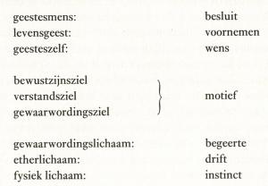 Ik heb in de verschillende psychologische gezichtspunten van anderen geen indeling van de wil kunnen vinden die zo direct met de verschillende aspecten van het menselijk zijn samenhangt, dan die Steiner naar voren brengt.