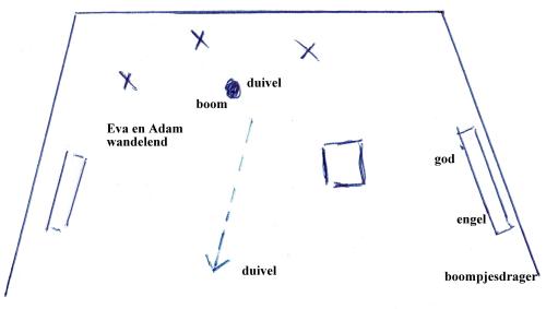 DH: tijdens 2e couplet gaan Adam en Eva achter de boom (tussen de bomen)