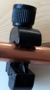 6. Neem een stukje koperen buis met een doorsnede van 15mm. Het stokje moet erin kunnen; dit eventueel wat afraspen.