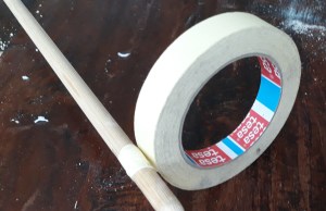 - Neem een rondhout van ongeveer 1 m of iets korter. (doorsnede tussen 13 en 15 mm meestal) De lengte is natuurlijk afhankelijk van het gebruik: moet je er de kaarsen in de zaal mee aansteken, dan zal die iets langer zijn.*