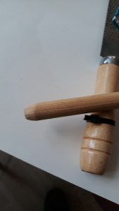 3. Rasp het boorgat iets verder uit zo, dat het rondhout er strak inpast.