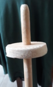 7. Lijm het buisje vast op het rondhout en laat het rusten op het rondje. Als er te veel ruimte is, kun je eerst wat band plakken.
