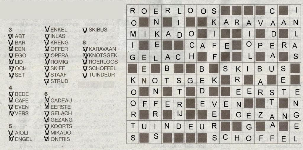 5 letters: KAARS – KLAAR – KNOET – LOVEN – MAAND – RONDE -STERK – TIRAN – TROEP