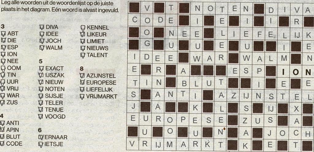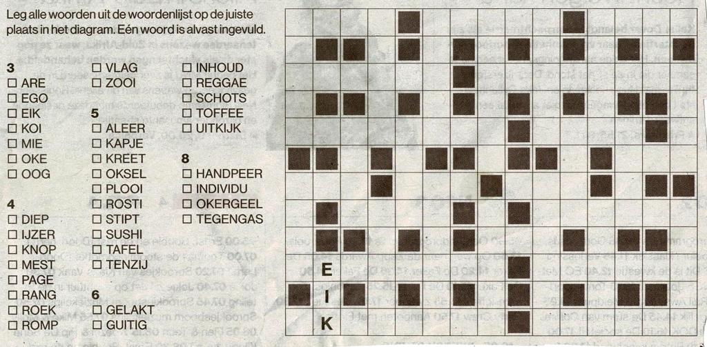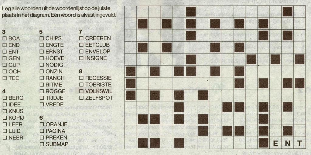 5 letters: BETER – EGGEN – GROEN – KRANT – NEVEL – OVAAL -SNOEP – SPOOK