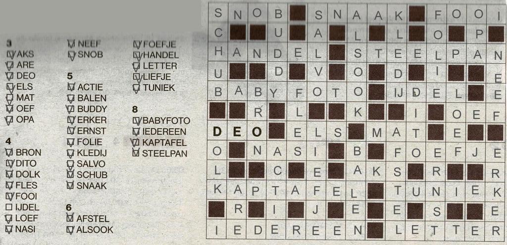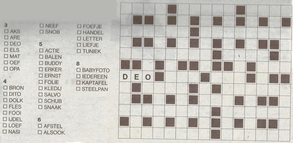 6 letters: GEMEEN – OPENEN – PANTER – REIGER