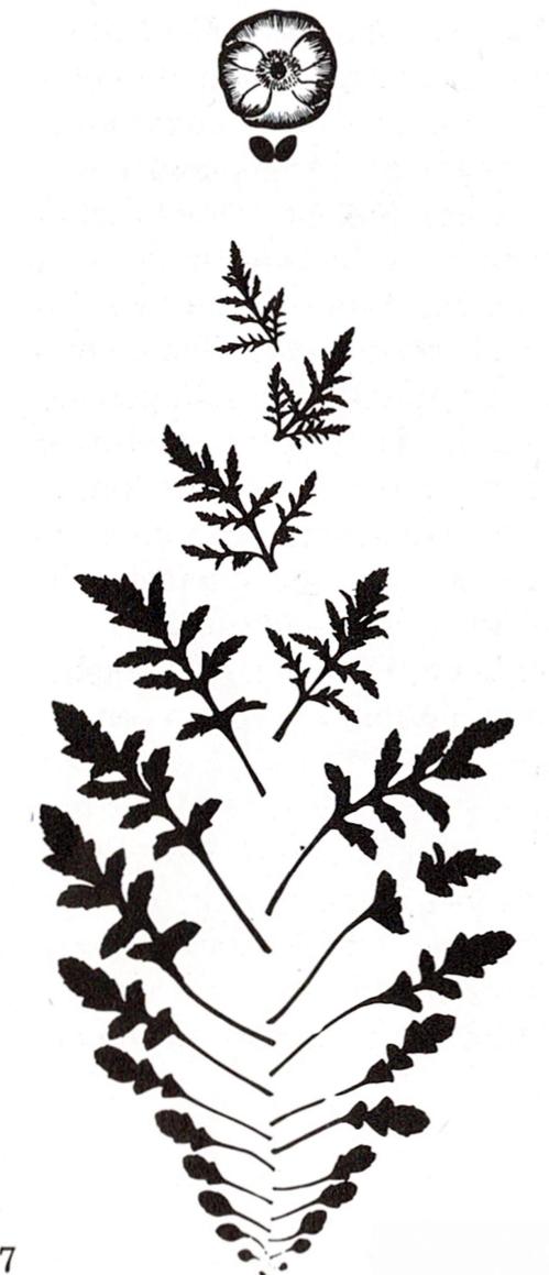 Maar terwijl het blad uiterlijk weer eenvoudiger wordt, is er veel dat erop wijst dat ongezien de tendens tot differentiatie verder gaat en het vormvermogen nog meer gedifferentieerd wordt. Zo kan men vaak vaststellen dat de afzonderlijke delen (afb. 3),