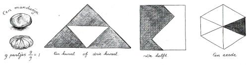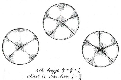 Verbroken eenheid, dat is de zielenstemming van het negen- à tienjarige kind. Verbroken eenheid typeert ook het rekenveld van de breuken. Daar zal het kind nieuwe eenheden, nieuwe gehelen, van moeten maken.
