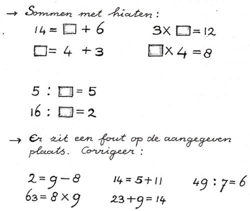 Maar steeds is eerst gedaan wat daarna opgeschreven wordt. Nooit is de som, in de vorm van kale rekengetallen, aanleiding tot een volgende stap in het leerproces!