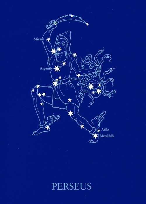Perseus vloog met de kop van Medusa in zijn hand, zoals wij hem in het sterrenbeeld zien, verder, tot hij in Ethiopië kwam. Daar zag hij aan de oever van de zee een schone jonkvrouw die aan de rotsen was geklonken. Waarom dat zo was en hoe Perseus haar en haar land bevrijdde van een verschrikkelijk zeemonster, staat bij het sterrenbeeld van Andromeda.