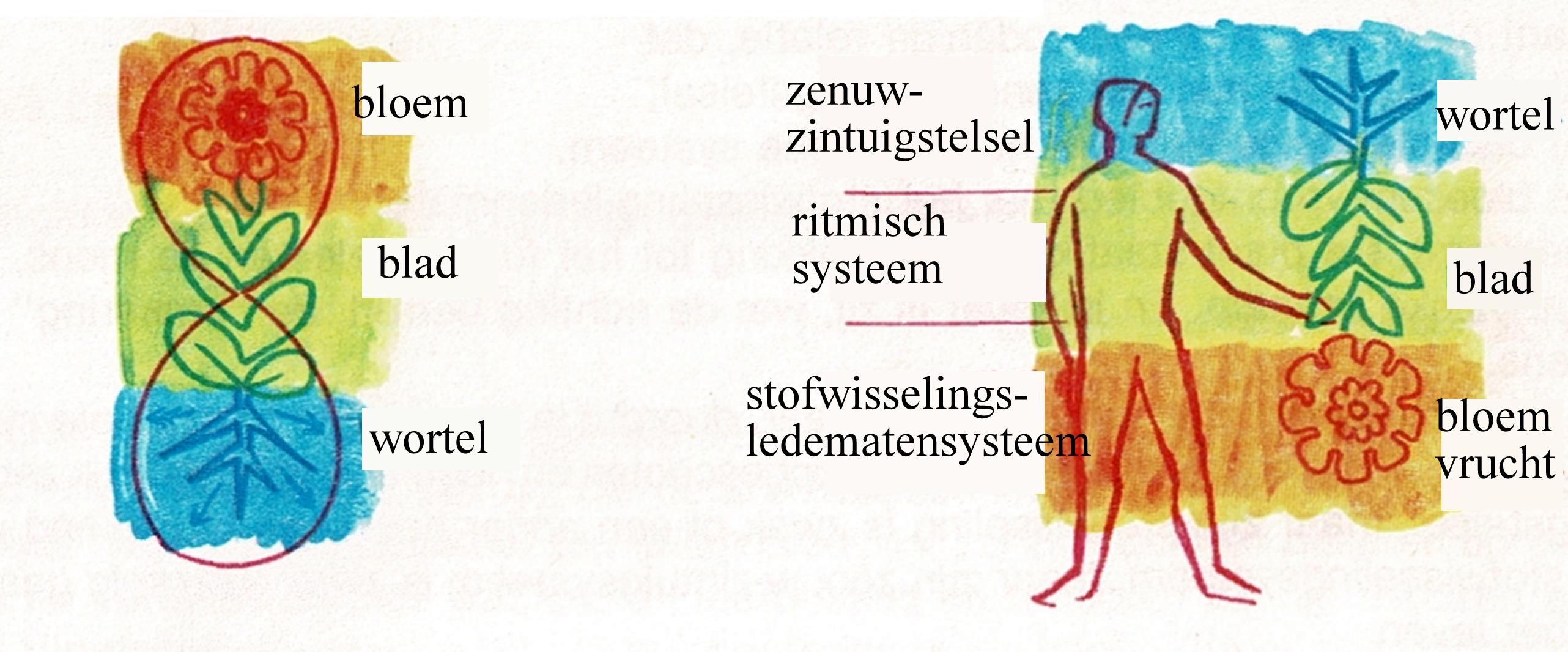 Heel kort samengevat zou je ‘de omkering van het principe van de drieledigheid bij mens en plant’ zo kunnen formuleren en weergeven: