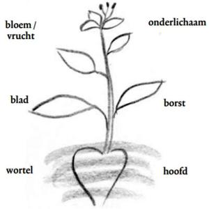 De plant komt overeen met de mens, maar niet zo, dat zij in dezelfde richting groeit, dus bijv.