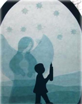 Een Engel (of engelen) brengt iedere dag het Kerstkind een beetje dichter bij de aarde. Trede voor trede daalt zij af om in de Kerstnacht het kind in de armen van Maria te leggen.
