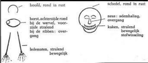 In voordracht 10 was er sprake van het hoofd als vrijwel ronde, kosmische vorm en de ledematen als botten die a.h.w. de vorm van sterrenstralen hebben.