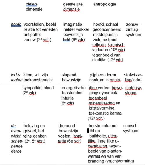 In zijn commentaar op de ‘Algemene menskunde‘ geeft Stefan Leber aan het begin van voordracht 13, dit schema weer: