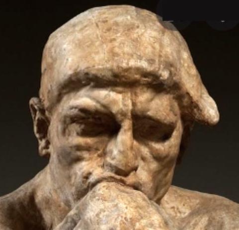 In het beeld ‘de denker’ van Rodin zou je dat a.h.w. kunnen zien.