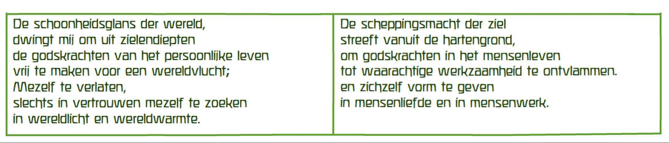 groeien.’ Daarin geeft hij zowel het geestelijke aspect weer (zijn geest en