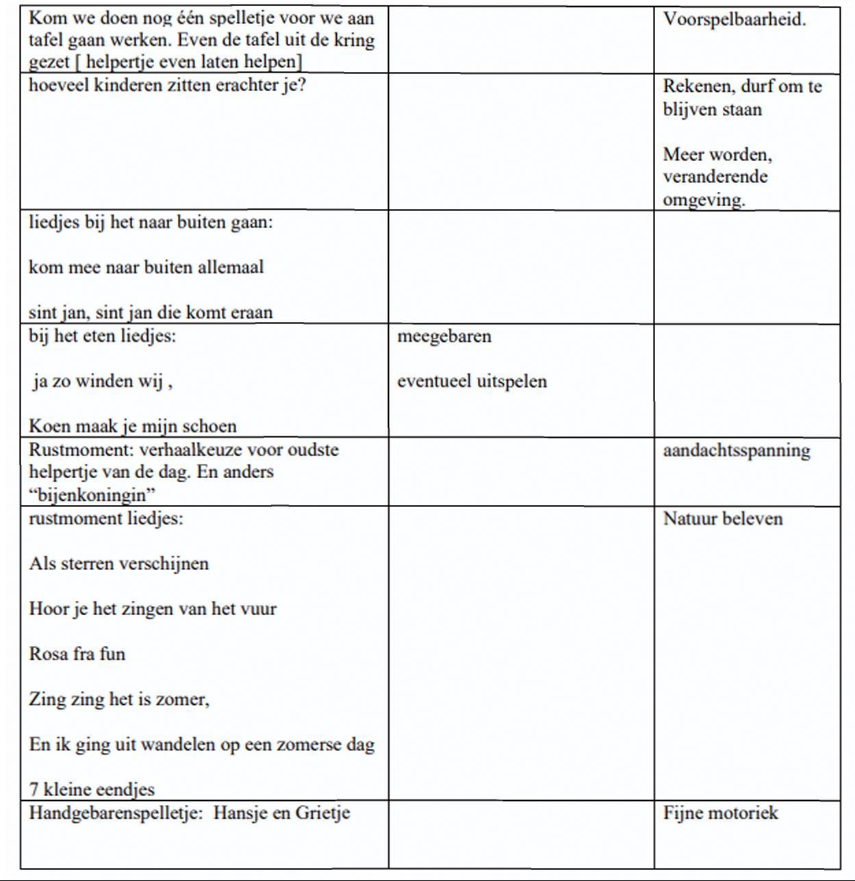 of liedjes met gebaren [zoals : “Hoofd schouders knie en teen”, of “dit zijn mijn wangen”…,