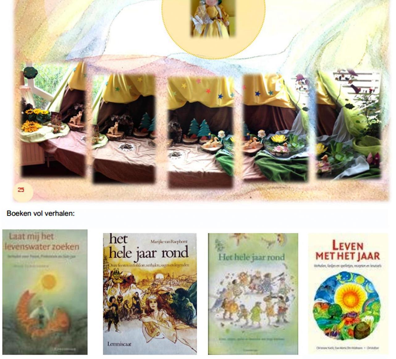 Kleuters: Grimm: “het klosje , de schietspoel en de naald’. “de gouden gans”, “de bijenkonngin”, ‘de kristallen bol”, “roodkapje “, “de zes zwanen”´