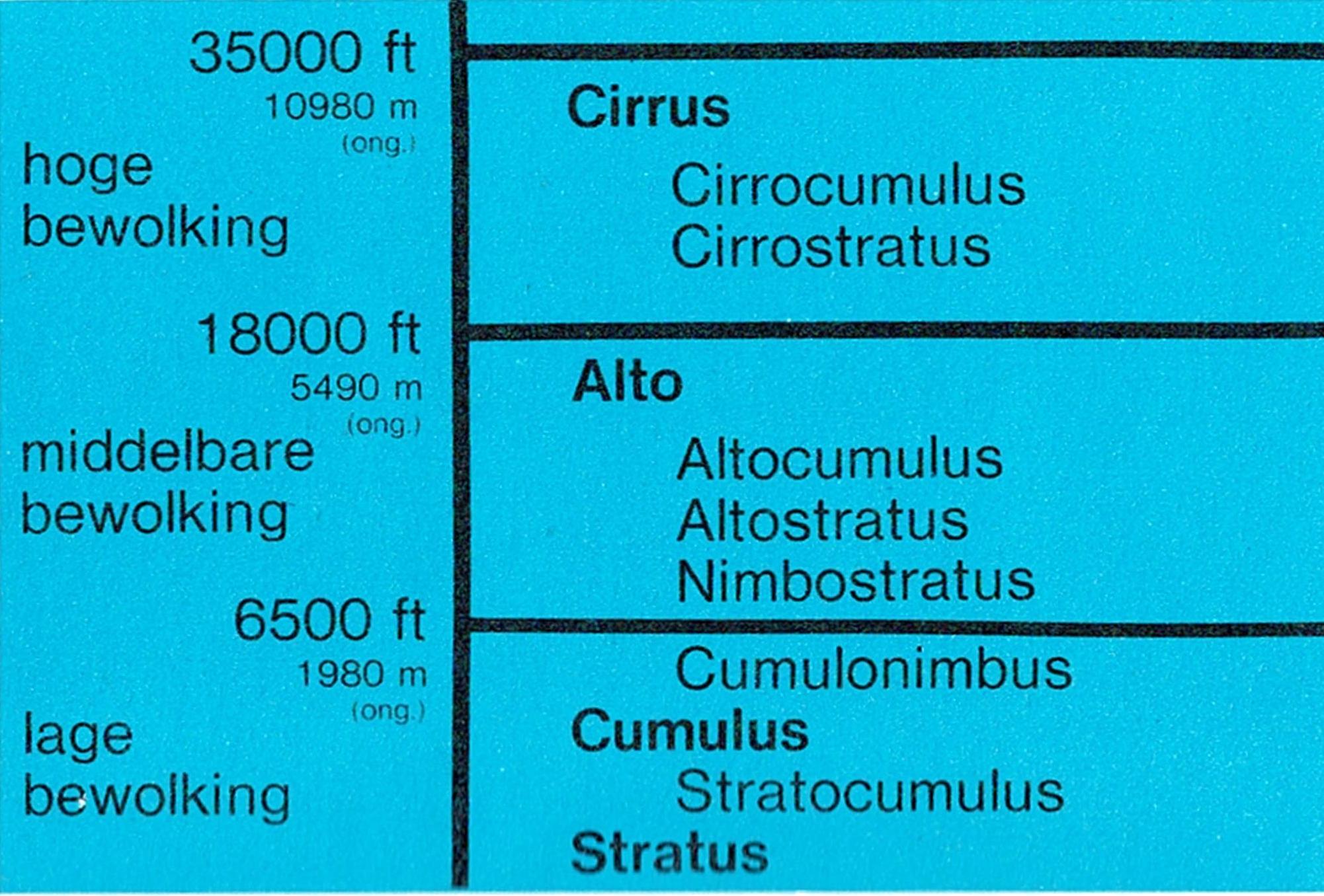 Bij deze trilogie horen ook de strofen over de vier klassieke wolkenvormen die ook hier moeten klinken, omdat ze een voortreffelijk begin vormen van een eerste wolkenleer.