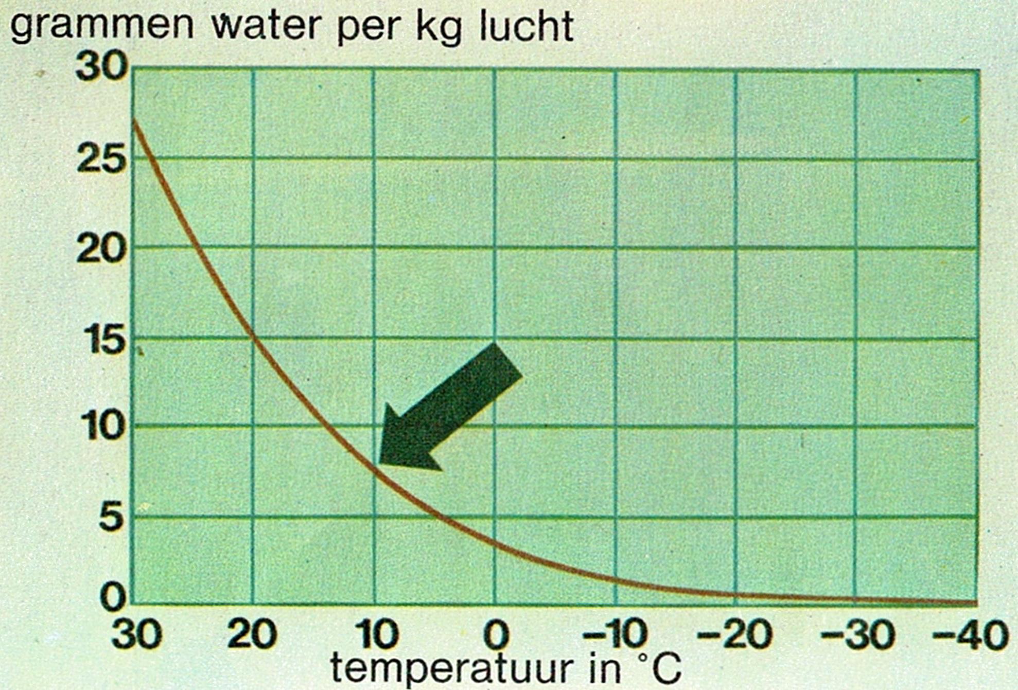 Nu moeten we het begrip ‘dauwpunt‘ gaan bespreken. Wie kent niet het voorbeeld van de koude en de verwarmde badkamer! Wanneer ik namelijk in een koude ruimte een douche neem, sta ik even later in een damp. Alle harde voorwerpen zoals de spiegel, de tegels en armaturen zijn beslagen. Gebruik ik een warme ruimte, dan is er veel minder condens. Wat betekent dat?