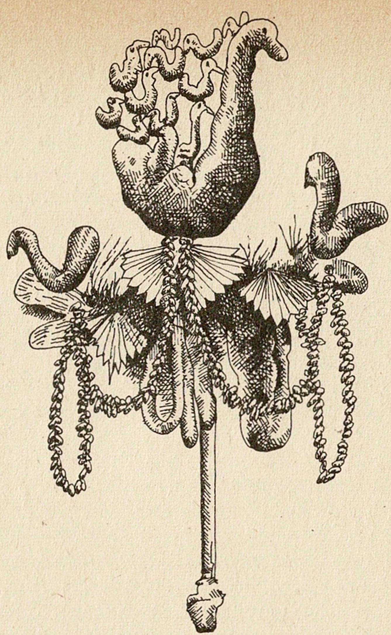 Nieuwjaarszanger in Groningen (alleen met een stok). Houtsnede van Nico Bulder in P. Groen, Oude en nieuwe Groninger liederen2, Winschoten 1958.