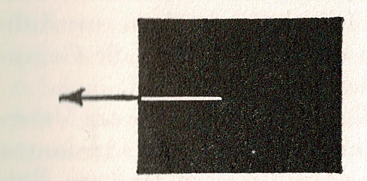 In onderstaande figuur is de situatie omgekeerd. In dezelfde richting van lichtafbuiging leidt de pijl nu van het witte naar het zwarte gebied. De punt is getekend in het zwarte veld en is wit op een zwarte achtergrond. Nu ontstaat een blauwe en violette kleurenrand.