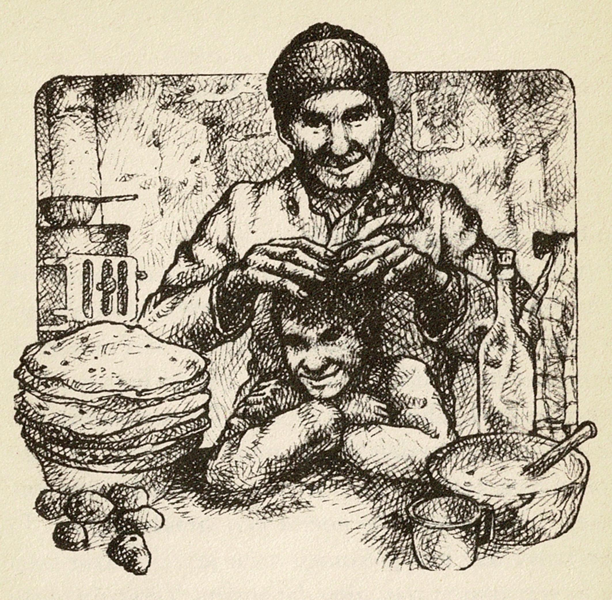 De volgende dag kan er een kort verhaal verteld worden: Een moeder wil een zware mand oppakken. Haar zoon ziet het en zegt: “Dat moet je niet alleen dragen. Ik kan je helpen.” (Een kleine tekening met deze dialoog zal later in periodeschrift komen [69].) Een gesprek over ik en jij zal daaruit worden ontwikkeld – het is een ervaring in de euritmie sinds de tweede klas (zie leerplan) in “moreel-pedagogische oefeningen”. Het ging verder naar wij en jullie. Het bijbehorende aanwijsgebaar wordt door de kinderen zelf uitgevoerd, je moet ze er alleen op wijzen.