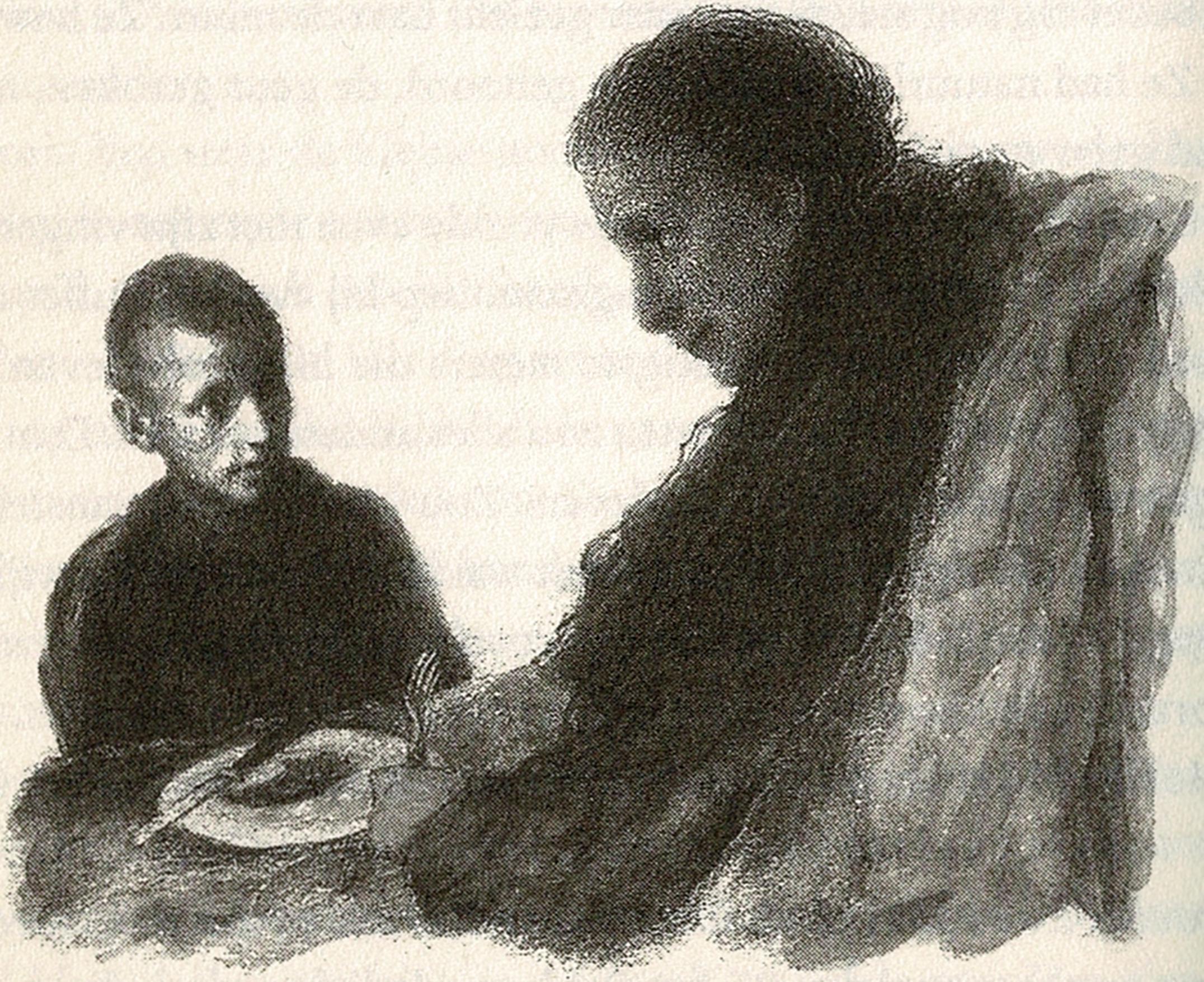 Ah, naast ons / lijden arme mensen / en velen zwaar. O, boven ons/ schijnen heldere sterren / en duizenden rondom.