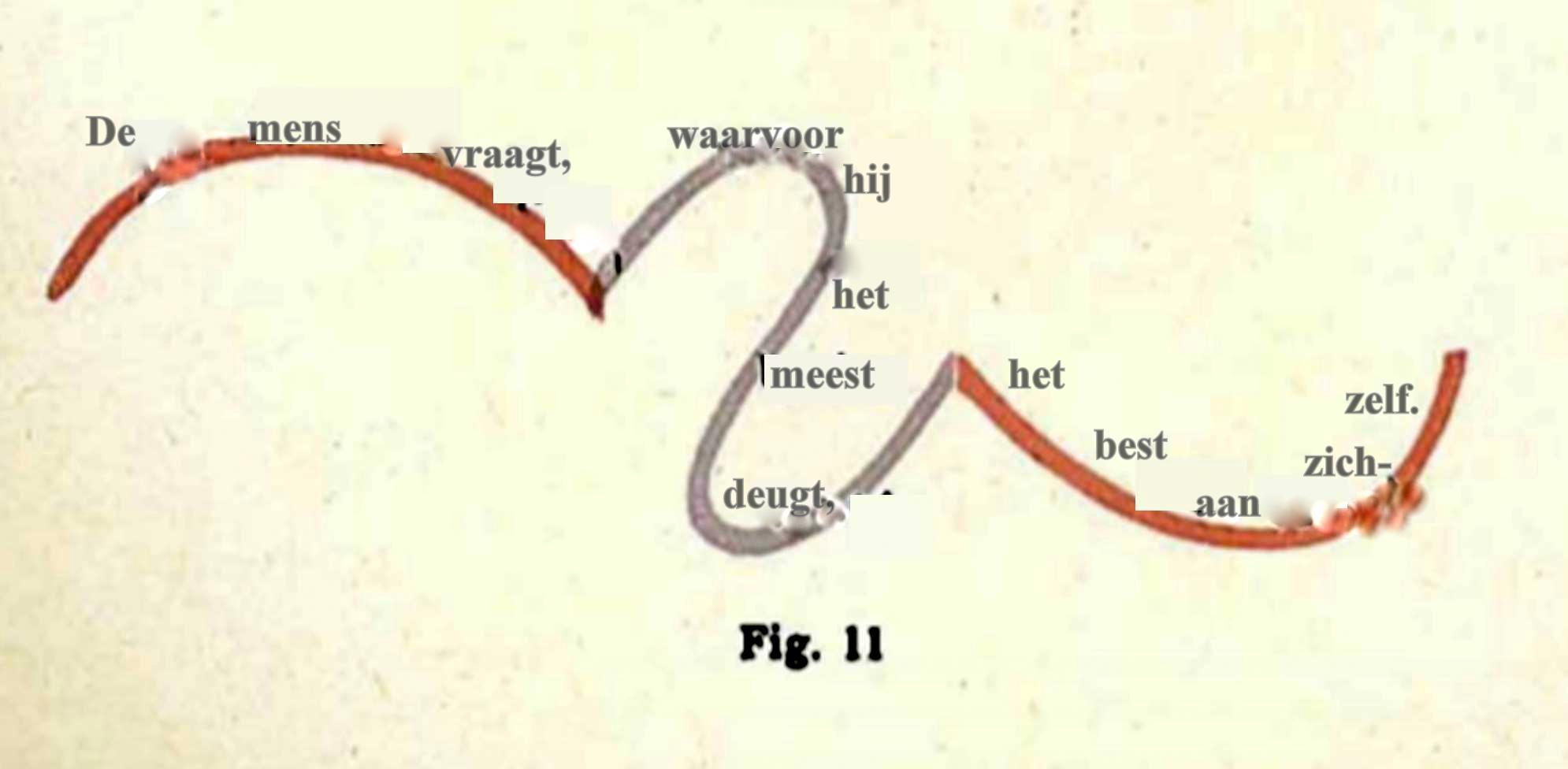 Zo zou je bijvoorbeeld van een zin die uit drie delen bestaat: de hoofdzin, de betrekkelijke bijzin en de voorwaardelijke bijzin deze ruimtelijk aanschouwelijk kunnen voorstellen.