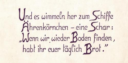 Bij recitatie waaraan ze allemaal meedoen, dompelen ze zich onder in het element van de hen onbekende wereld; door de activiteit worden ze extreem levendig, en het gezang kalmeert ze weer en laat ze uitklinken. Voor en na deze drieklank, een moment van stilte.