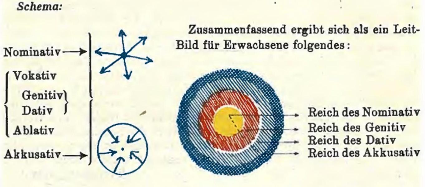 Zo gepresenteerd lijkt deze aanpak misschien lukraak. Maar dat is het niet. De leraar maakt de grond los en zaait het zaad. Hij heeft een duidelijk plan en volgens dat plan selecteert hij de voorbeelden voor de oefeningen. Deze worden in samenwerking met de leraar gemaakt. Veel van onze kinderen hebben constante hulp nodig, die hen moet worden gegeven door middel van herhaalde uitleg. We moeten ervoor zorgen dat elk kind – voor zover hun mogelijkheden dat toelaten – bijblijft. We moeten hen het gevoel geven dat de leerstof gemakkelijk is, dat ze die kunnen begrijpen en beheersen. Alleen zo kunnen we de interesse wekken waaruit vreugde en liefde voortkomen. We kunnen nooit te veel doen aan duidelijkheid, herhaling in uitleg en geduld. Aan de andere kant mogen we niet minder van de leerlingen eisen dan ze aankunnen. Vervolgens moeten we onszelf er ook van overtuigen dat ze echt beheersen wat er van hen verwacht wordt. Daarom zijn goed voorbereide schriftelijke proefwerkjes sterk aan te raden, te beginnen in klas 6. Uiteindelijk moeten we weten waar de kinderen staan en, indien nodig zullen we ook de ouders informeren. De hierboven genoemde zinnetjes kunnen soms in het Duits worden uitgesproken en de leerlingen kunnen worden gevraagd ze in de vreemde taal te reproduceren. Vooral zwakkere leerlingen of leerlingen die taalkundig niet getalenteerd zijn, vinden ze een startpunt voor het begrijpen van grammaticaregels. De beschreven grammaticale oefeningen kunnen niet als bijzonder intellectueel worden beschouwd. Ze zijn intellectueel in die mate dat ze nuttig zijn voor het gemiddelde kind. Als we ze elke les tien minuten oefenen, van klas 5 tot en met 9, [dus in de bovenbouw] zullen deze oefeningen ervoor zorgen dat alles wat ze eerder hebben geleerd, niet verdwijnt tijdens de puberteit. Want net als bij negen- en tienjarigen komt er voor veertien- en vijftienjarigen een moment waarop alles voor hen verandert; ze denken dat ze niets meer kunnen wat ze niet intellectueel hebben opgenomen. We proberen deze nieuwe metamorfose op de beschreven manier tegen te gaan.